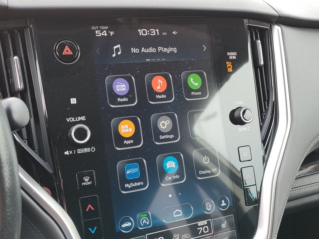 - Radio: Subaru STARLINK 11.6" Multimedia Plus Sys -inc: AM/FM stereo, HD Radio, valet mode, multi-touch gesture high resolution display screen, voice activated controls, Bluetooth audio streaming and hands-free phone connectivity w/SMS text messaging (refer to subaru.com for cell phone compatibility), Near Field Communication (NFC), iPod control capability, SiriusXM 360L Platinum trial (4 months free trial/subscription required after), SiriusXM Travel Link (4 months free trial/subscription required after), smartphone integration: Android Auto and Apple CarPlay w/full screen view and wireless connection and STARLINK cloud applications (refer to subaru.com for app availability), USB and Over The Air (OTA) audio system update, audio system and Bluetooth steering wheel control switches, 576 watt harman/kardon surround sound system w/12 speakers, illuminated 3.5mm auxiliary input jack and illuminated USB-A and USB-C input/charge ports SiriusXM Platinum trial available after launch, possibly October 2023.